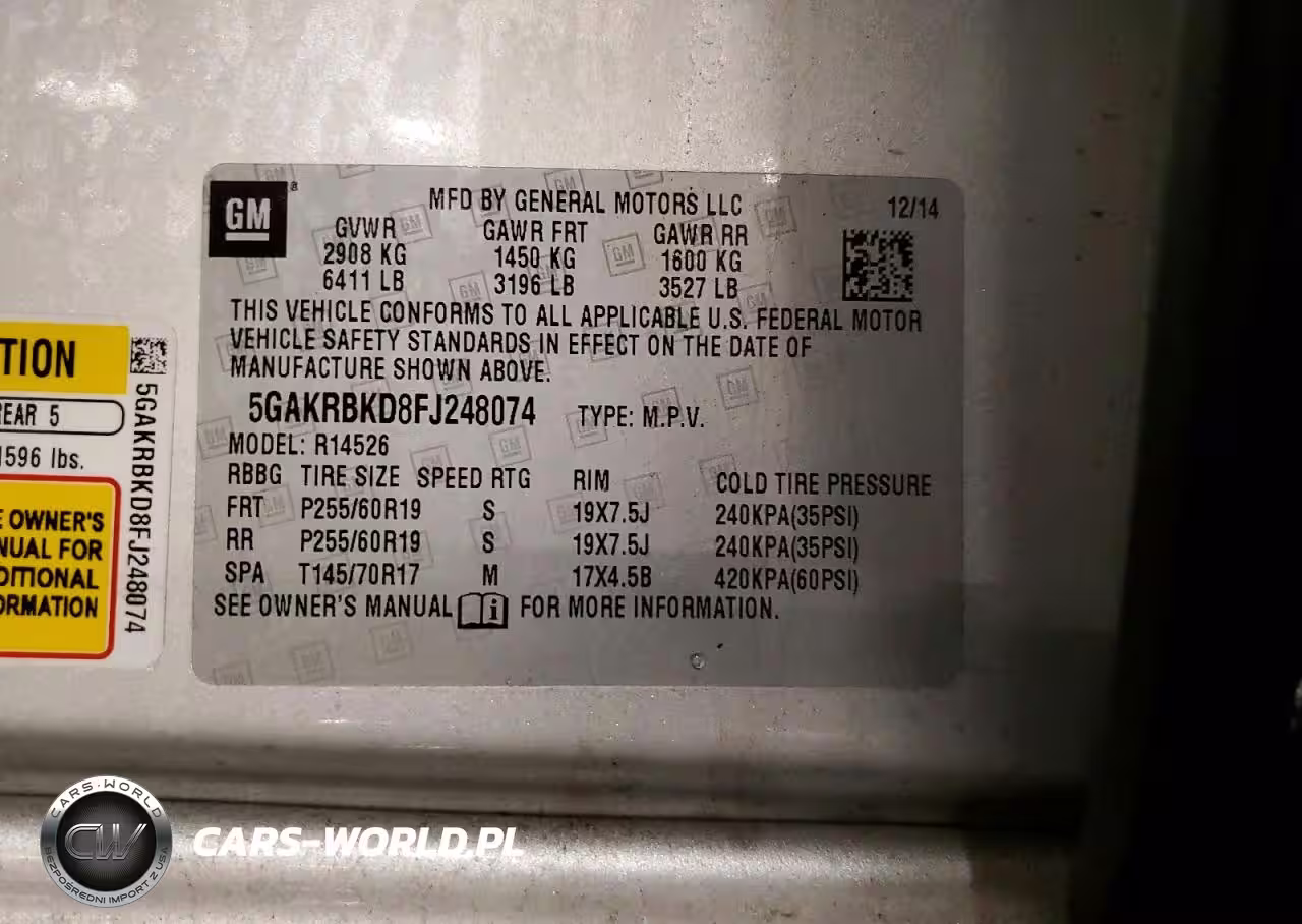 Copart Nr: C-79949965 VIN: 5GAKRBKD8FJ248074 Port: Indianapolis, IN