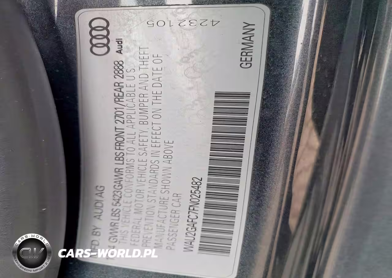 Copart Nr: C-79957635 VIN: WAU2GAFC7FN025482 Port: Los Angeles, CA