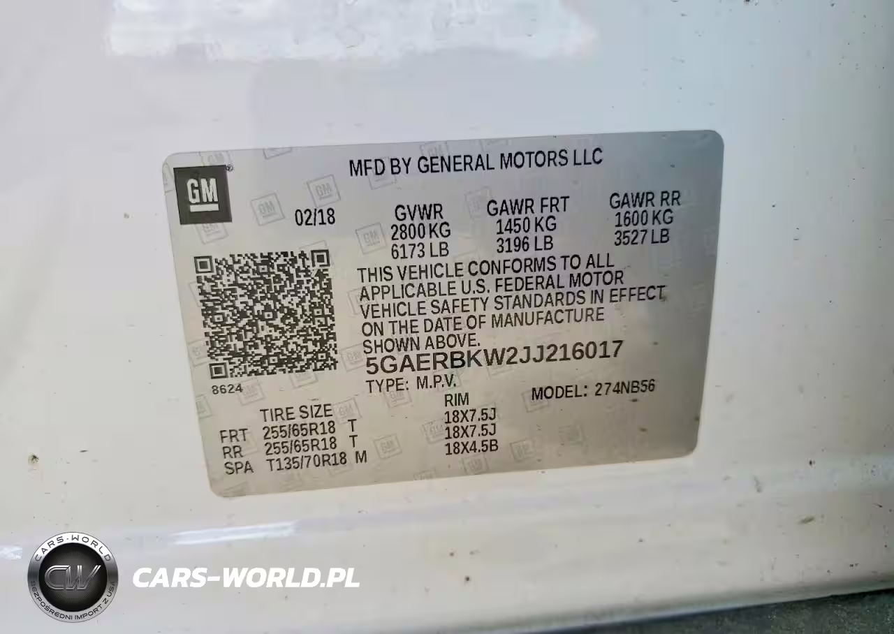 Copart Nr: C-79962155 VIN: 5GAERBKW2JJ216017 Port: Savannah, GA