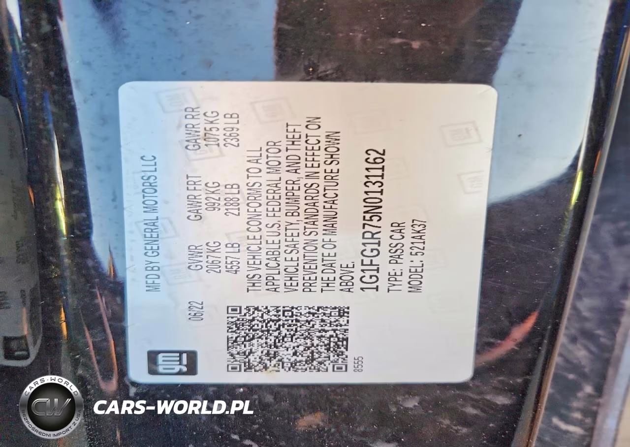 Copart Nr: C-79982725 VIN: 1G1FG1R75N0131162 Port: Elizabeth, NJ