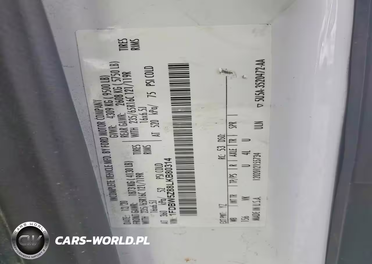 Copart Nr: C-79988085 VIN: 1FDBW5Z88LKB80314 Port: Savannah, GA