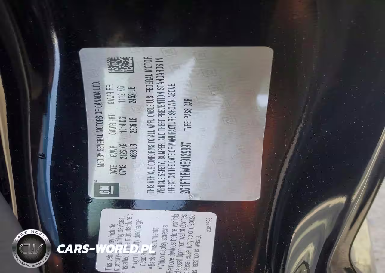 Copart Nr: C-79990615 VIN: 2G1FT1EW4E9129997 Port: Savannah, GA