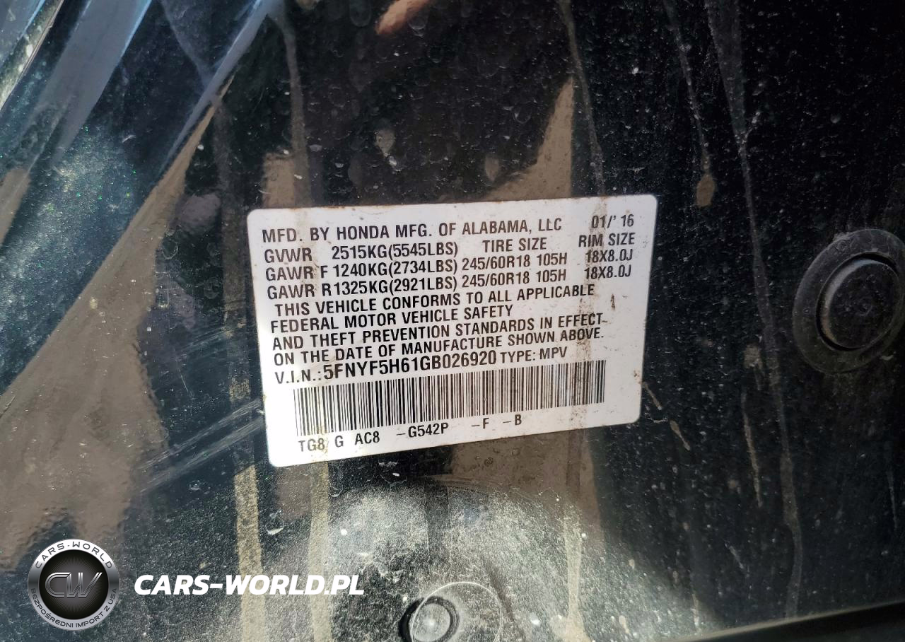 Copart Nr: C-81486125 VIN: 5FNYF5H61GB026920 Port: Houston, TX