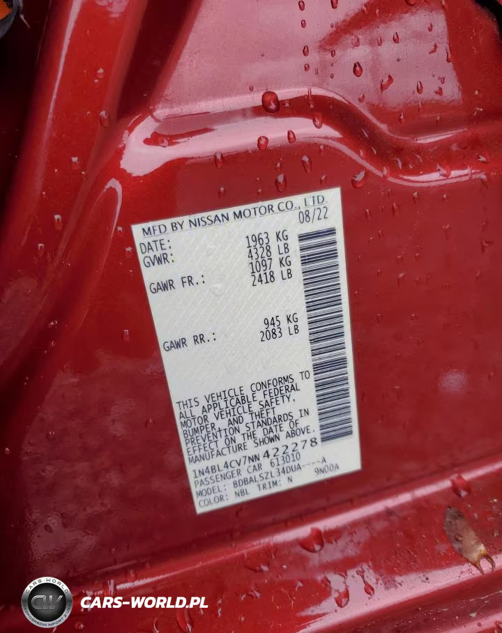Copart Nr: C-82777105 VIN: 1N4BL4CV7NN422278 Port: Savannah, GA
