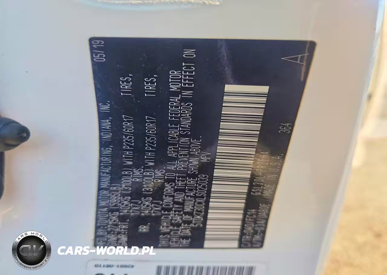 Copart Nr: C-84431964 VIN: 5TDKZ3DCXLS025039 Port: Elizabeth, NJ