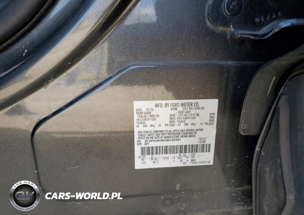 Copart Nr: C-85094715 VIN: 2FMPK4K99GBC25341 Port: Houston, TX
