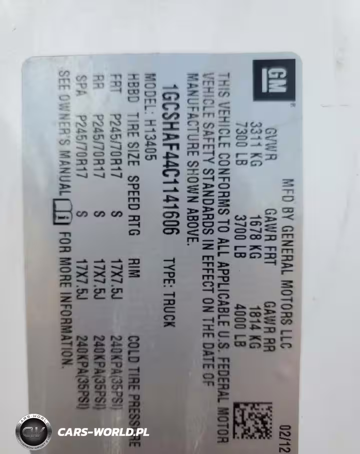 Copart Nr: C-85436325 VIN: 1GCSHAF44C1141606 Port: Indianapolis, IN
