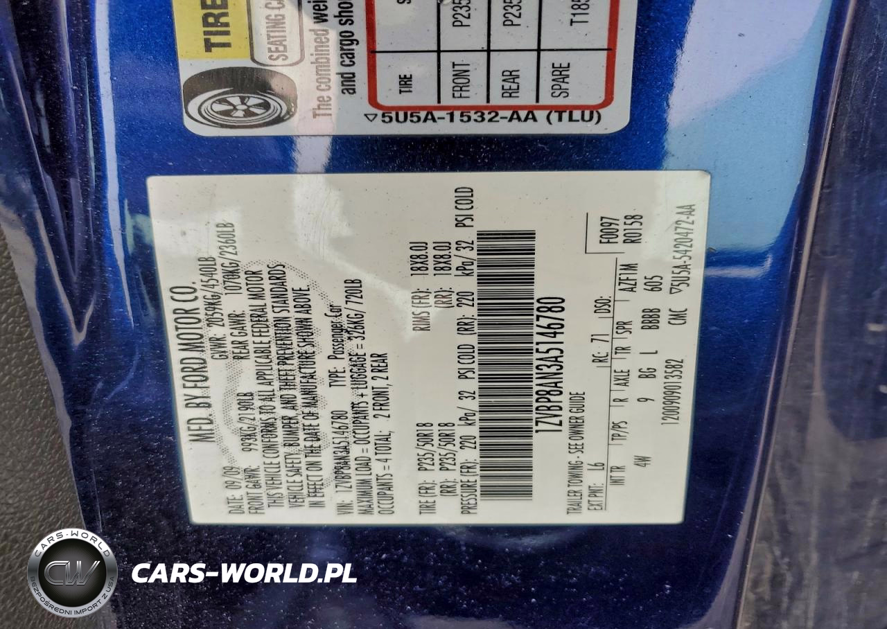 Copart Nr: C-85442415 VIN: 1ZVBP8AN3A5146780 Port: Los Angeles, CA