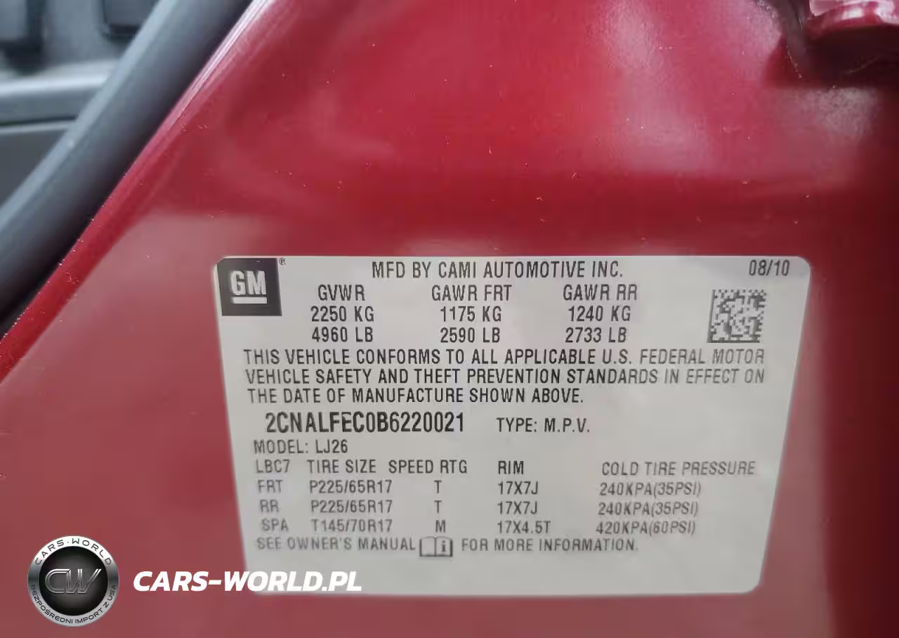 Copart Nr: C-85783485 VIN: 2CNALFEC0B6220021 Port: Houston, TX