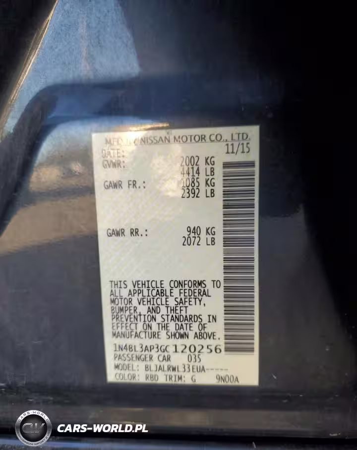 Copart Nr: C-85947475 VIN: 1N4BL3AP3GC120256 Port: Elizabeth, NJ