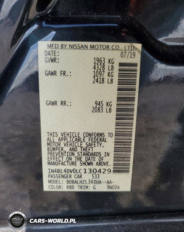 Copart Nr: C-86074845 VIN: 1N4BL4DV0LC130429 Port: Savannah, GA