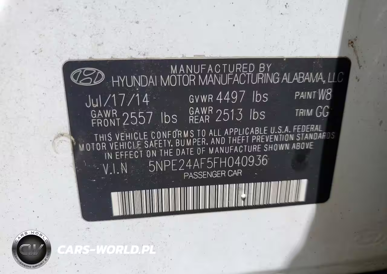 Copart Nr: C-86507605 VIN: 5NPE24AF5FH040936 Port: Los Angeles, CA