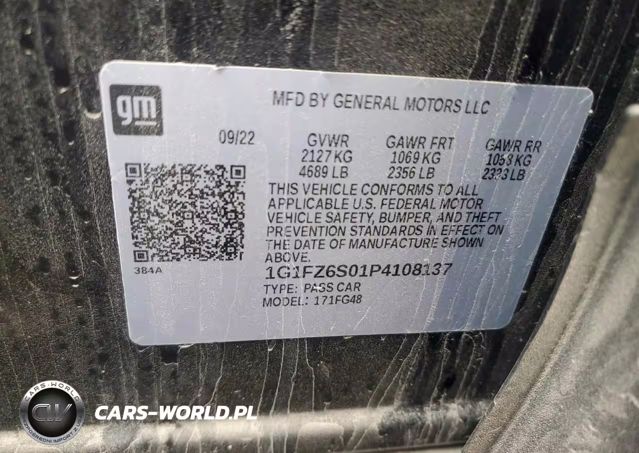 Copart Nr: C-86521405 VIN: 1G1FZ6S01P4108137 Port: Elizabeth, NJ