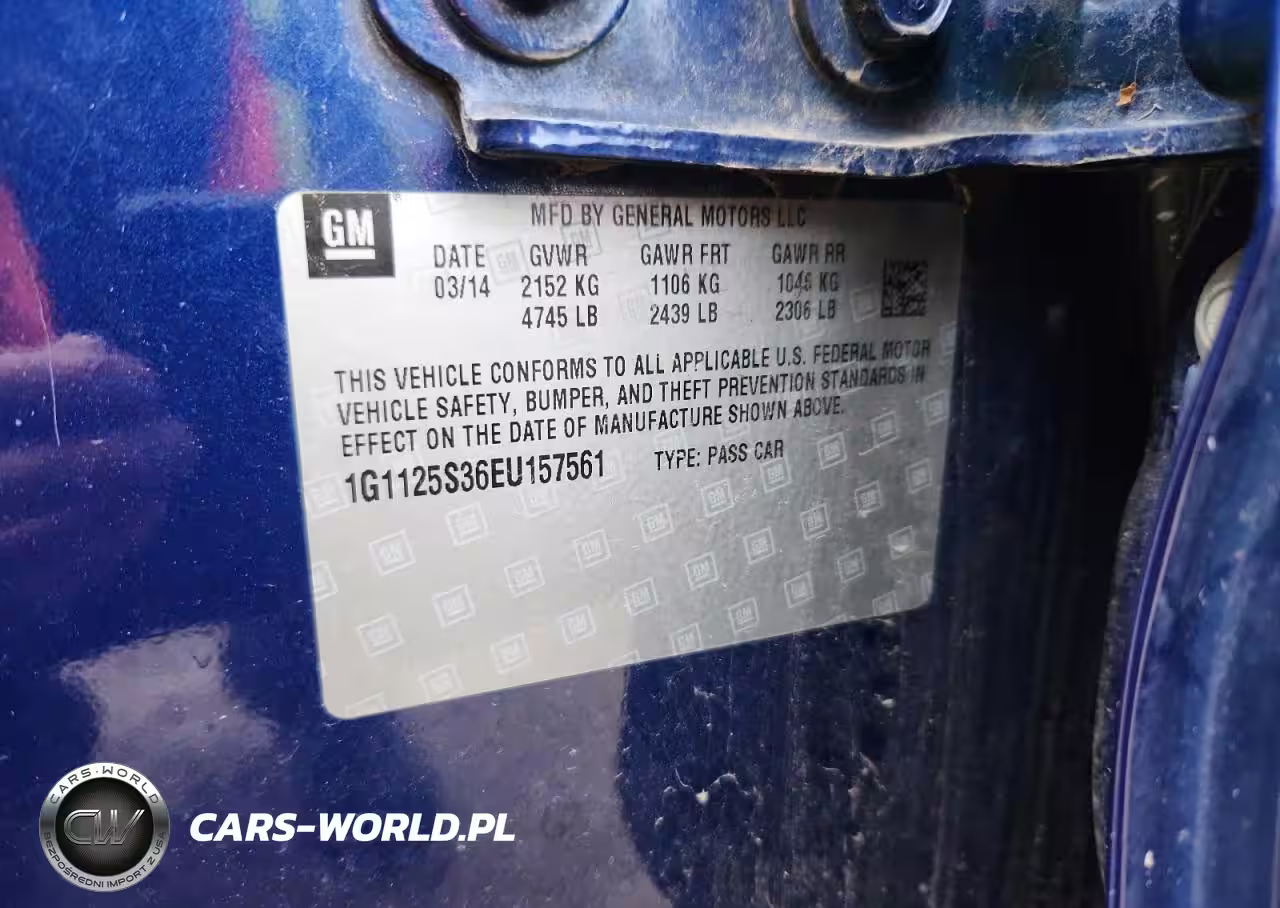 Copart Nr: C-86890415 VIN: 1G1125S36EU157561 Port: Houston, TX