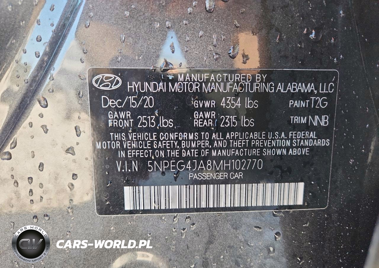 Copart Nr: C-86896805 VIN: 5NPEG4JA8MH102770 Port: Savannah, GA