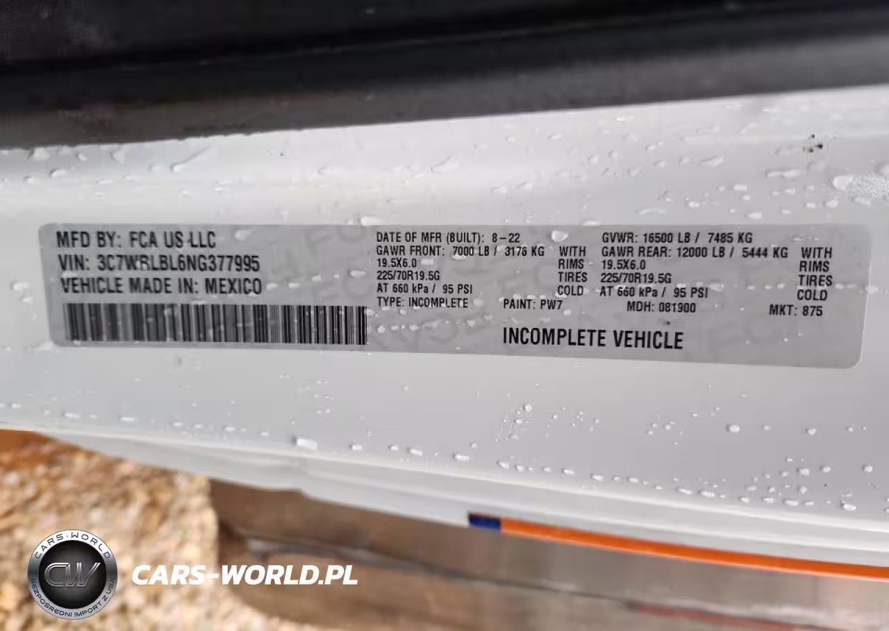 Copart Nr: C-87011625 VIN: 3C7WRLBL6NG377995 Port: Savannah, GA