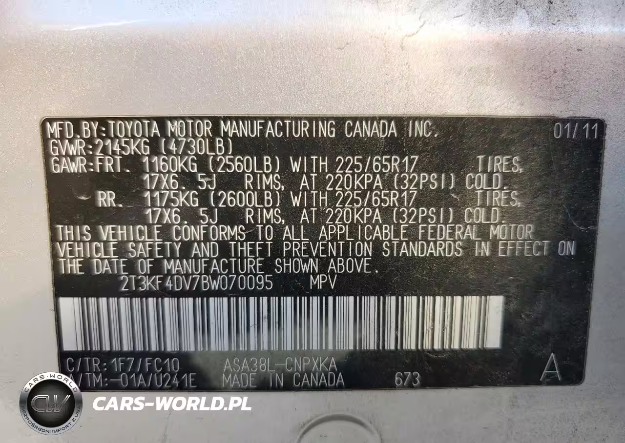 Copart Nr: C-87106695 VIN: 2T3KF4DV7BW070095 Port: Los Angeles, CA