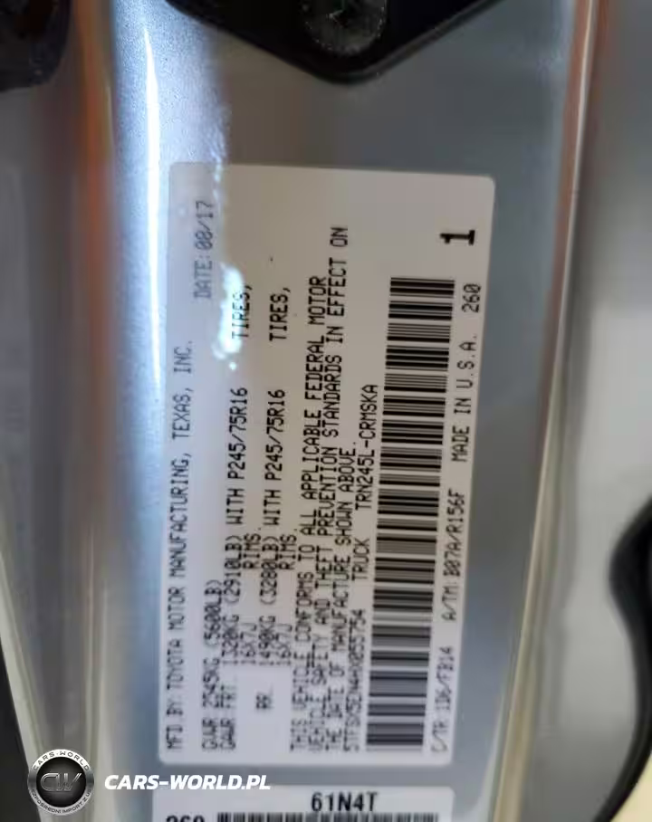 Copart Nr: C-87291725 VIN: 5TFSX5EN4HX055754 Port: Elizabeth, NJ