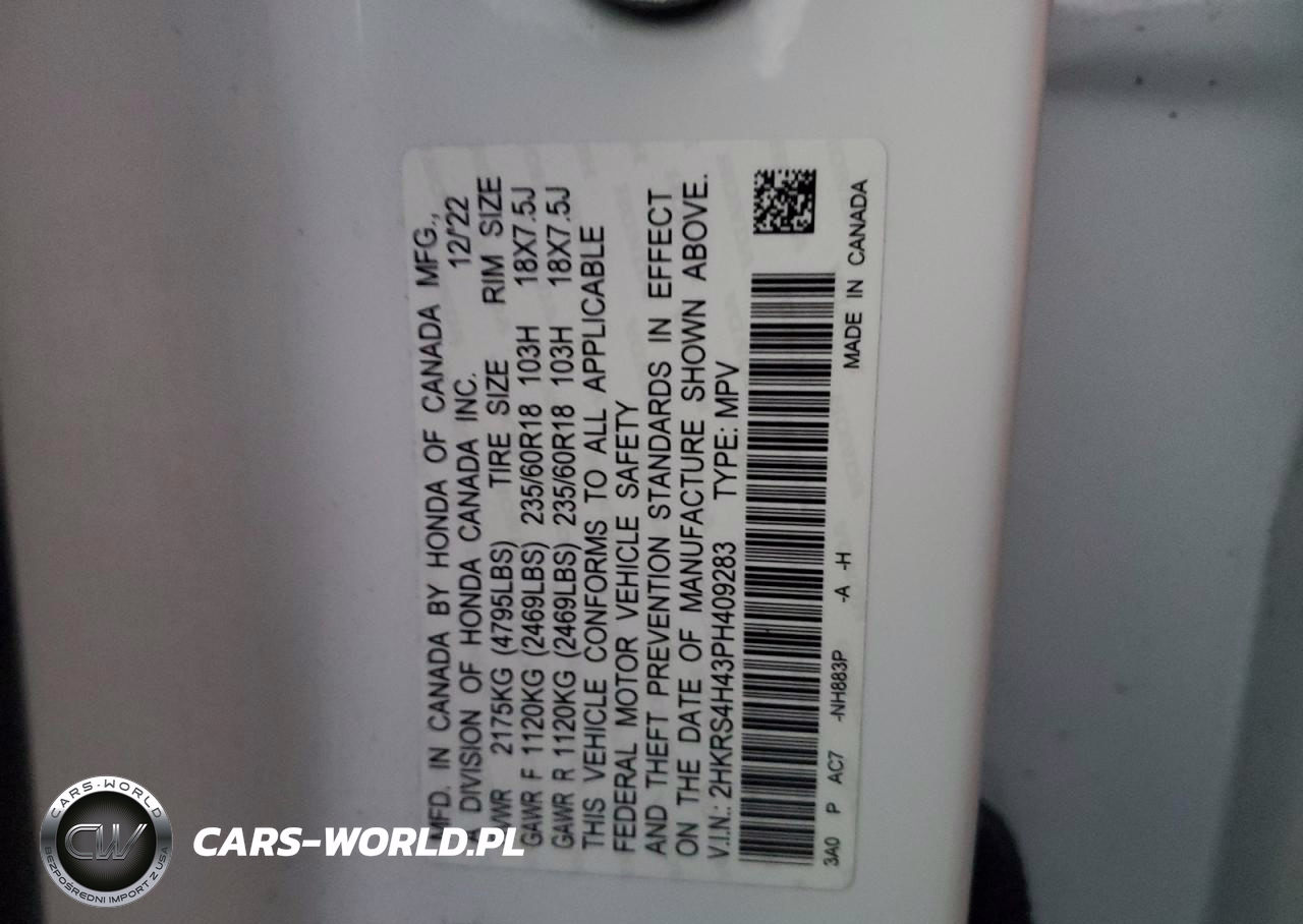 Copart Nr: C-87302775 VIN: 2HKRS4H43PH409283 Port: Elizabeth, NJ