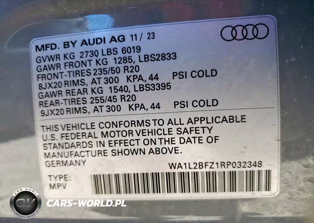 Copart Nr: C-89617965 VIN: WA1L2BFZ1RP032348 Port: Houston, TX