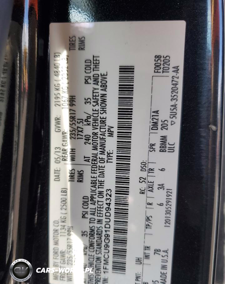 Copart Nr: C-89824725 VIN: 1FMCU9G91DUD94323 Port: Elizabeth, NJ