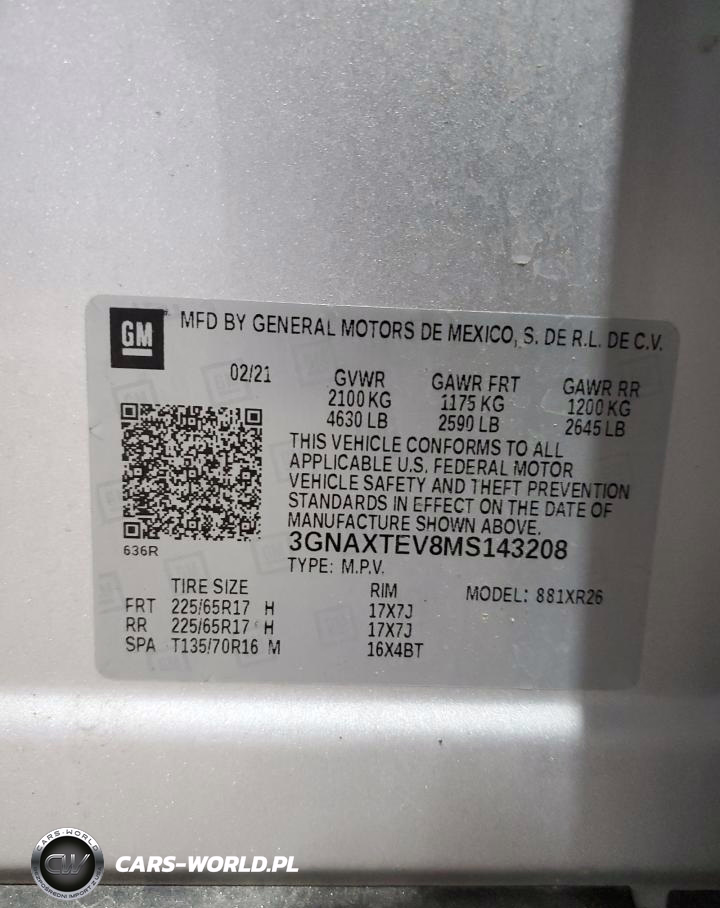 Copart Nr: C-89875485 VIN: 3GNAXTEV8MS143208 Port: Elizabeth, NJ