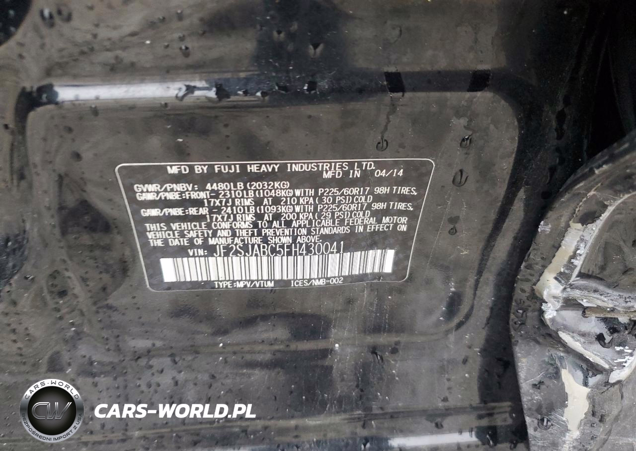 Copart Nr: C-91408825 VIN: JF2SJABC5FH430041 Port: Indianapolis, IN