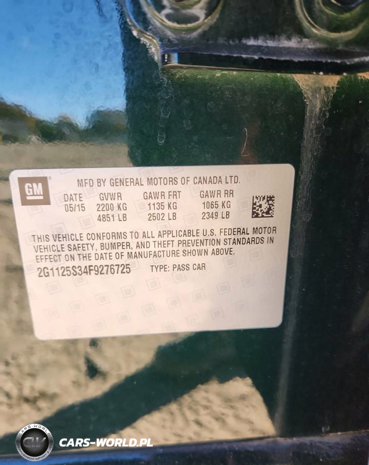Copart Nr: C-91657875 VIN: 2G1125S34F9276725 Port: Elizabeth, NJ