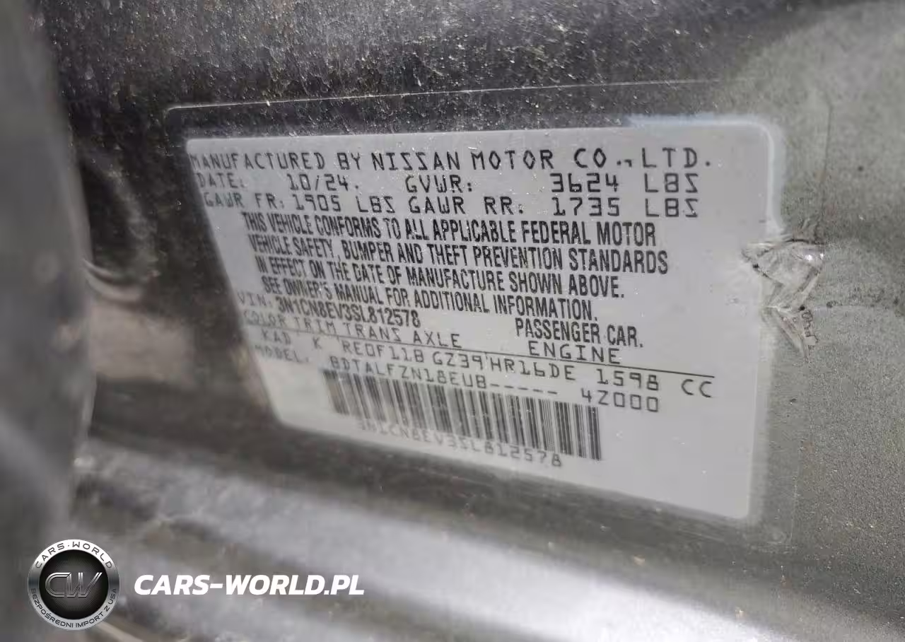Copart Nr: C-91673875 VIN: 3N1CN8EV3SL812578 Port: Elizabeth, NJ