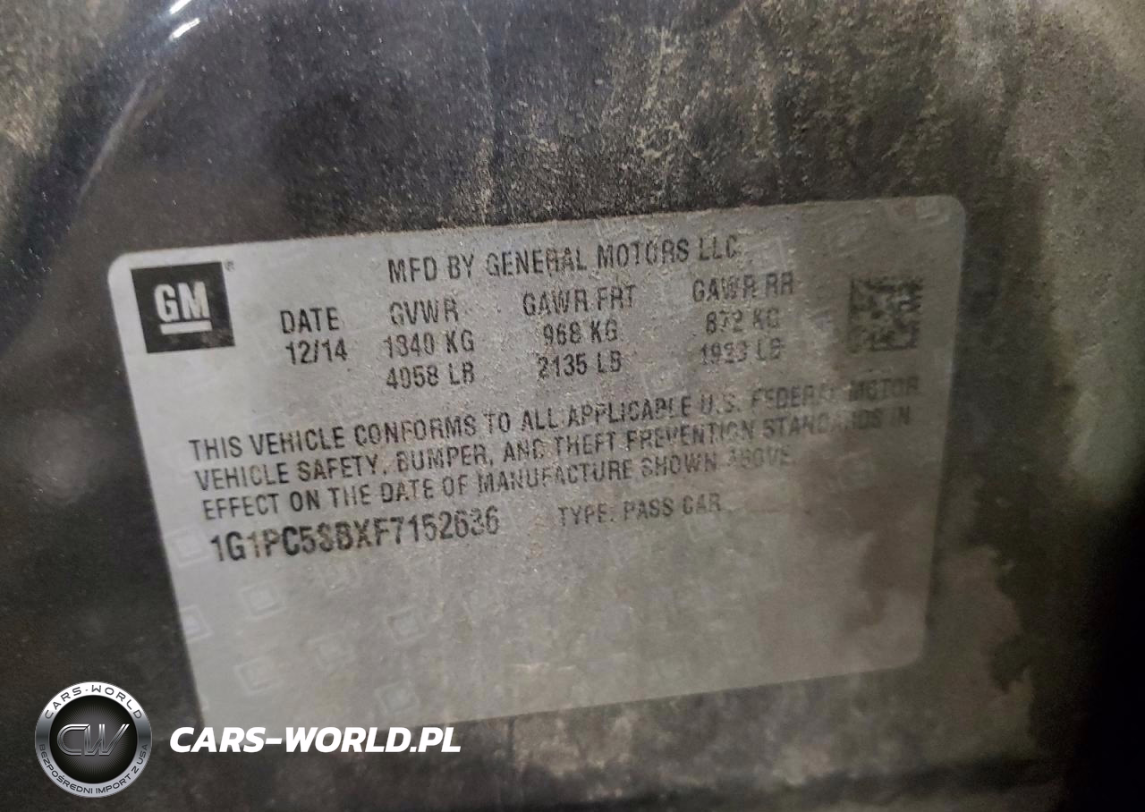 Copart Nr: C-91993975 VIN: 1G1PC5SBXF7152636 Port: Indianapolis, IN