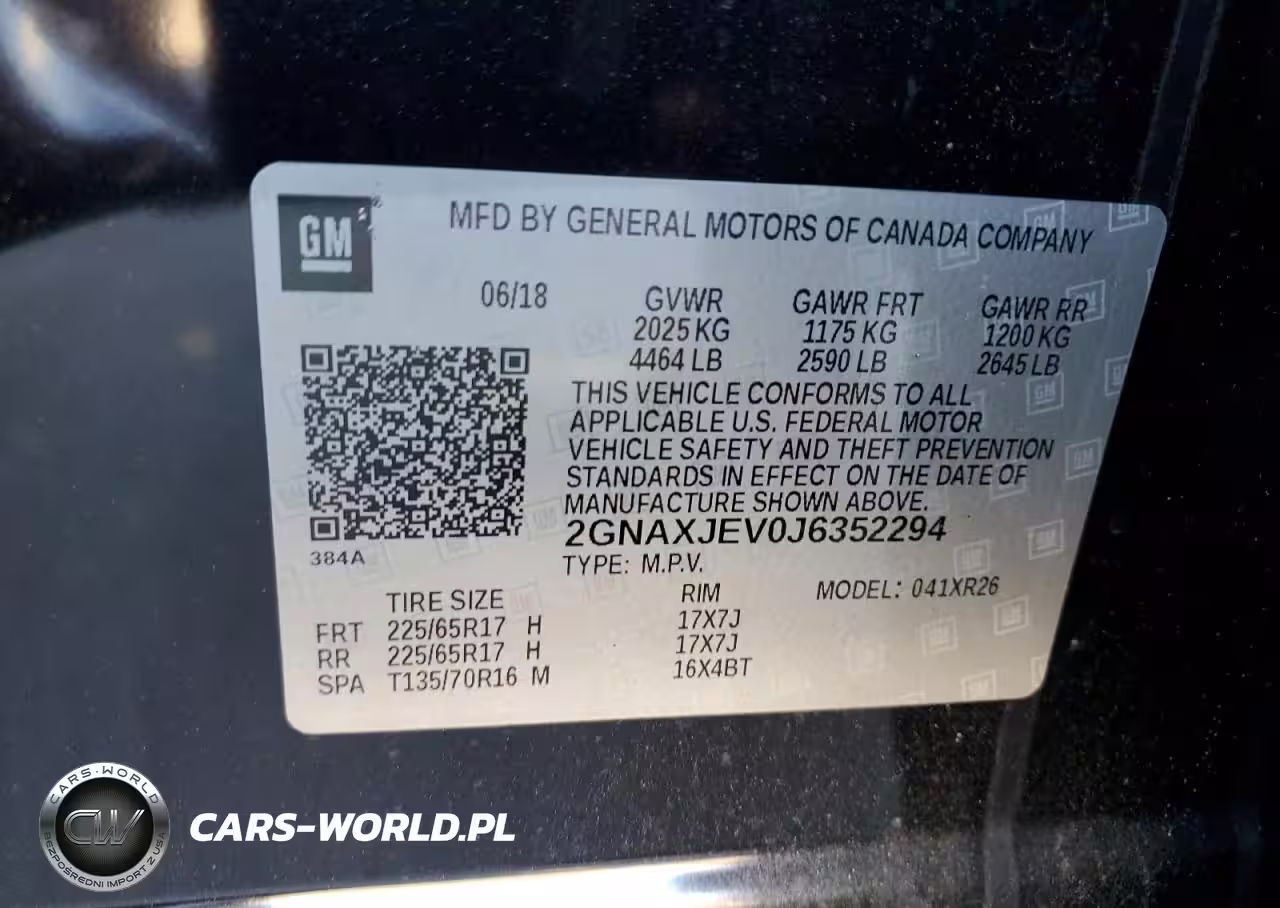 Copart Nr: C-92427945 VIN: 2GNAXJEV0J6352294 Port: Elizabeth, NJ