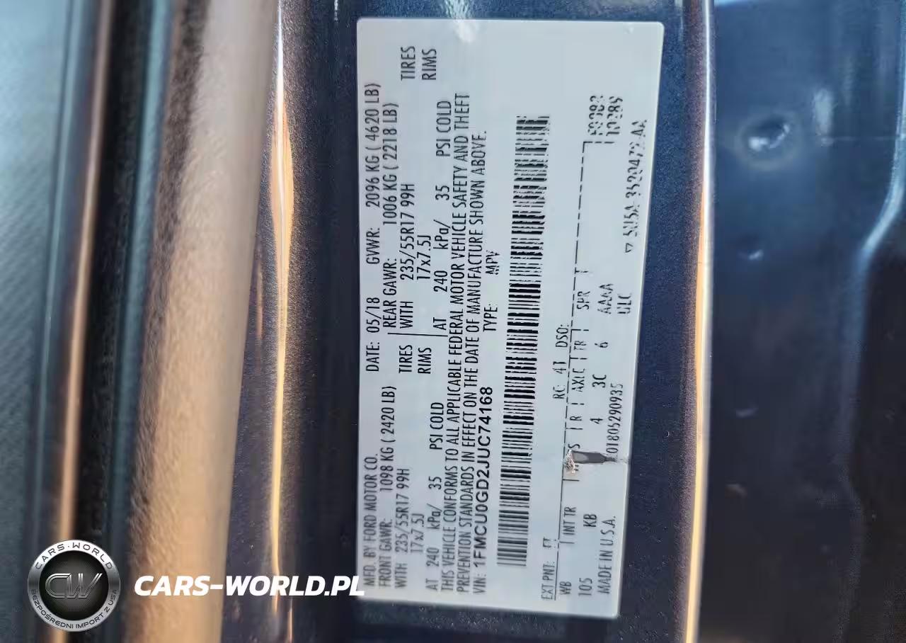 Copart Nr: C-92471615 VIN: 1FMCU0GD2JUC74168 Port: Savannah, GA
