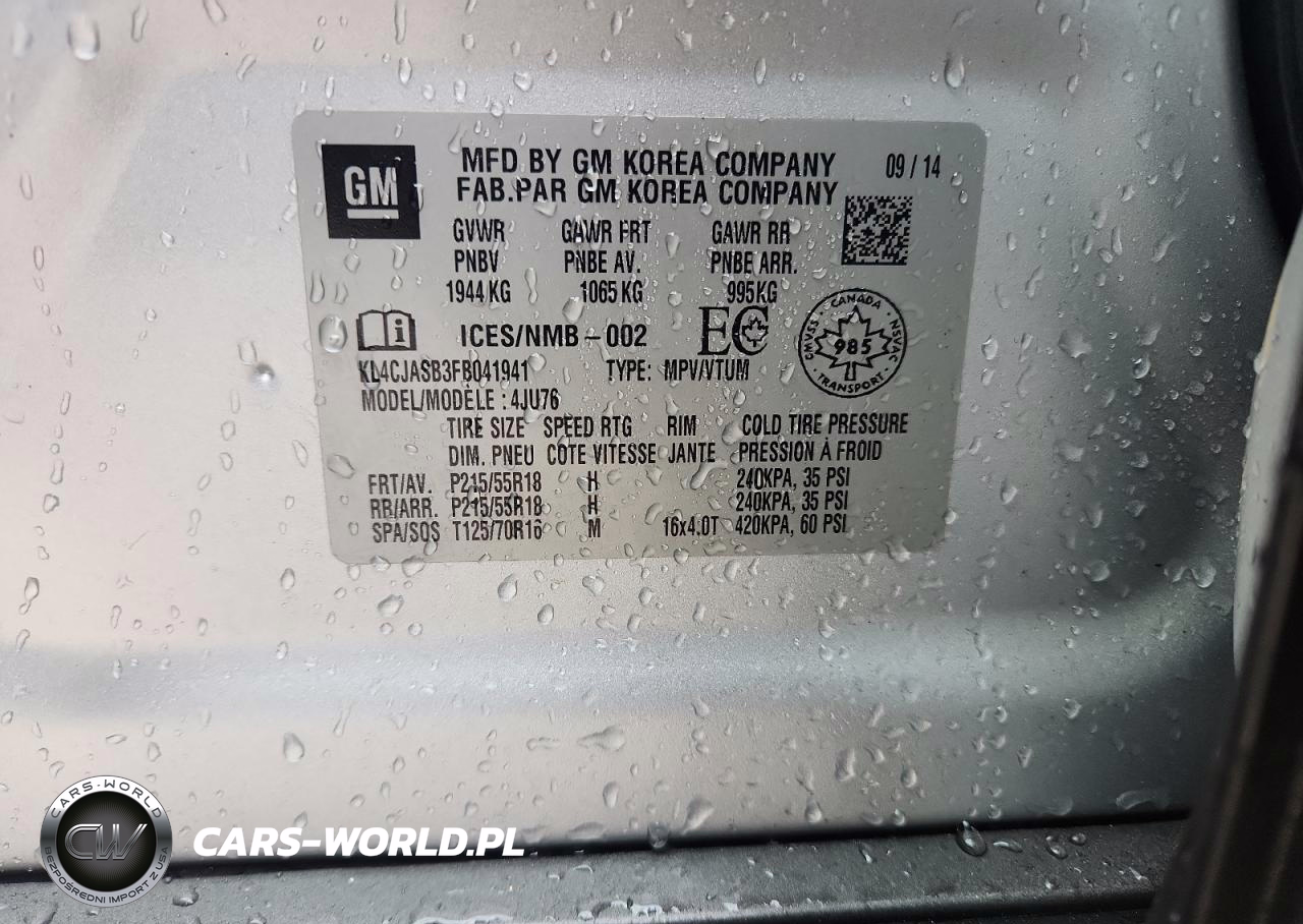 Copart Nr: C-92581935 VIN: KL4CJASB3FB041941 Port: Indianapolis, IN