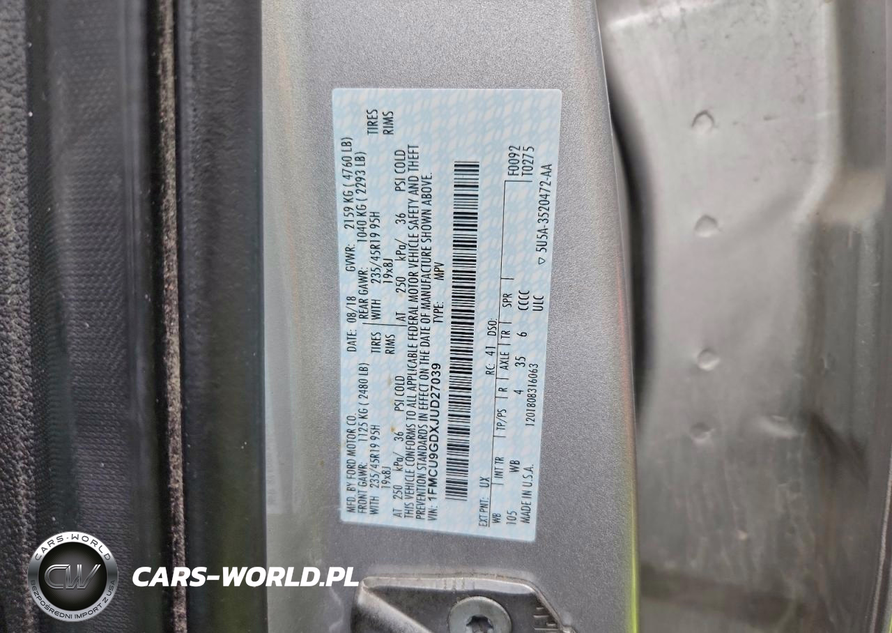 Copart Nr: C-93753275 VIN: 1FMCU9GDXJUD27039 Port: Indianapolis, IN