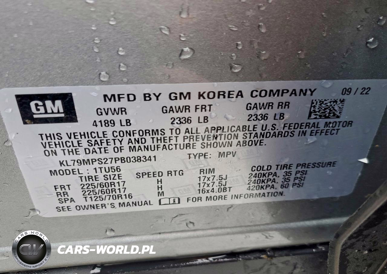 Copart Nr: C-93841445 VIN: KL79MPS27PB038341 Port: Indianapolis, IN
