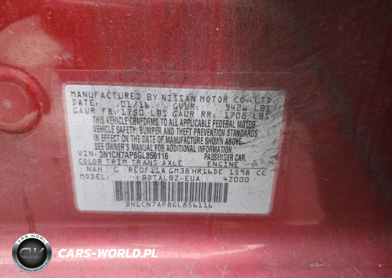 Copart Nr: C-93884535 VIN: 3N1CN7AP8GL856116 Port: Los Angeles, CA
