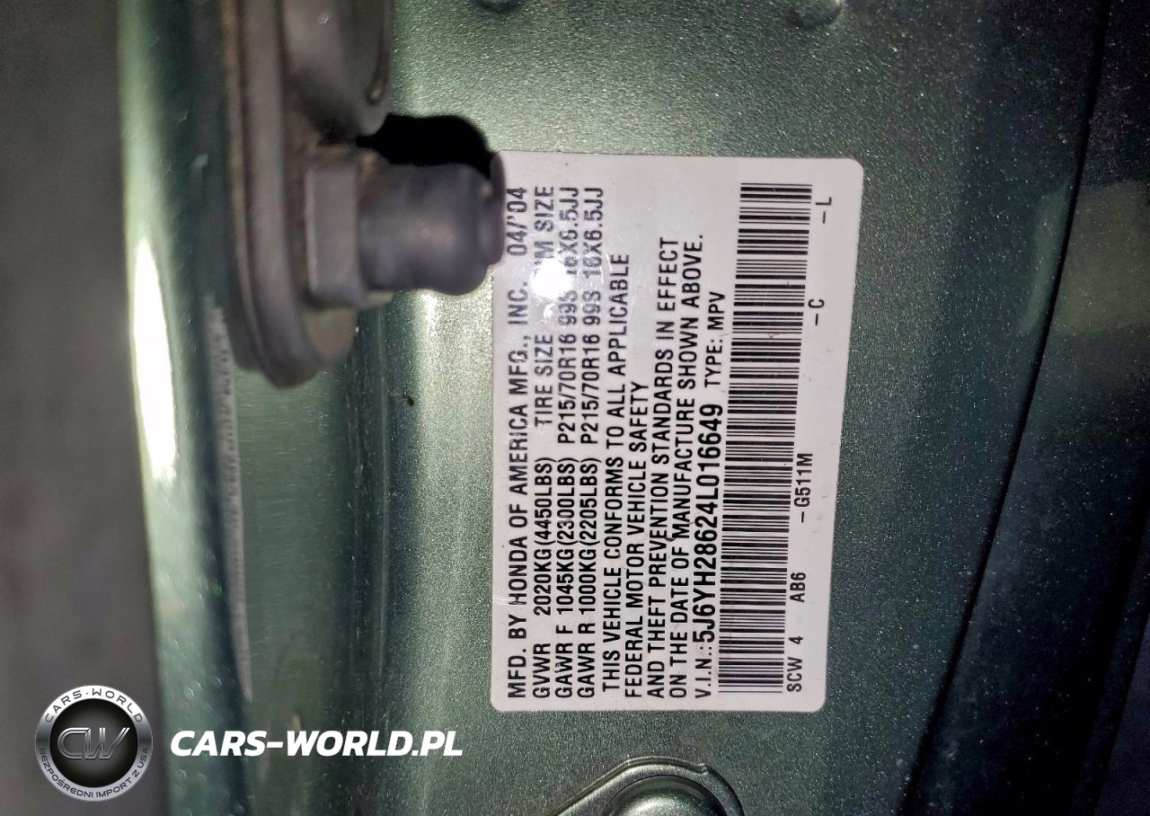 Copart Nr: C-93969605 VIN: 5J6YH28624L016649 Port: Los Angeles, CA