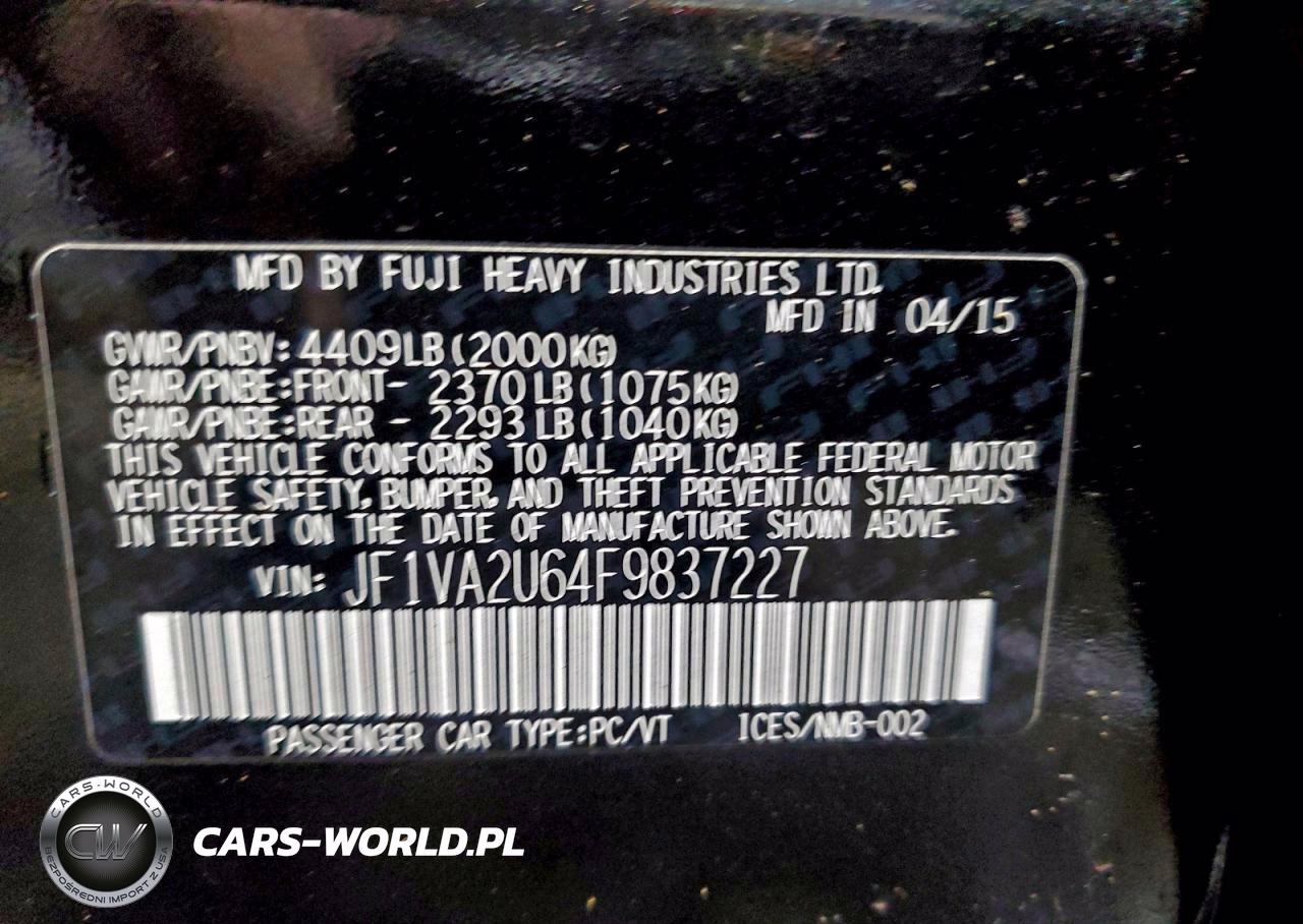 Copart Nr: C-93995995 VIN: JF1VA2U64F9837227 Port: Elizabeth, NJ