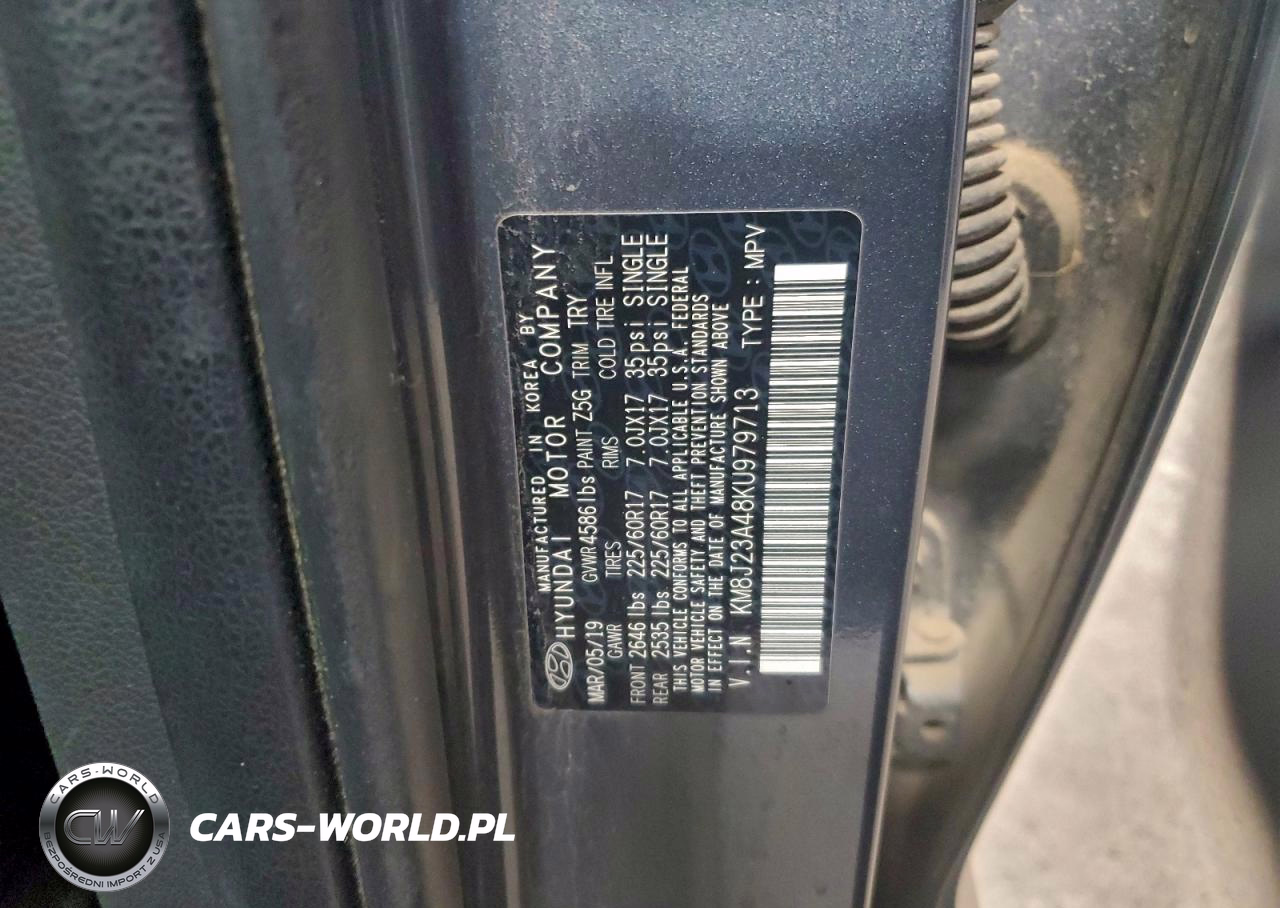 Copart Nr: C-94293205 VIN: KM8J23A48KU979713 Port: Indianapolis, IN