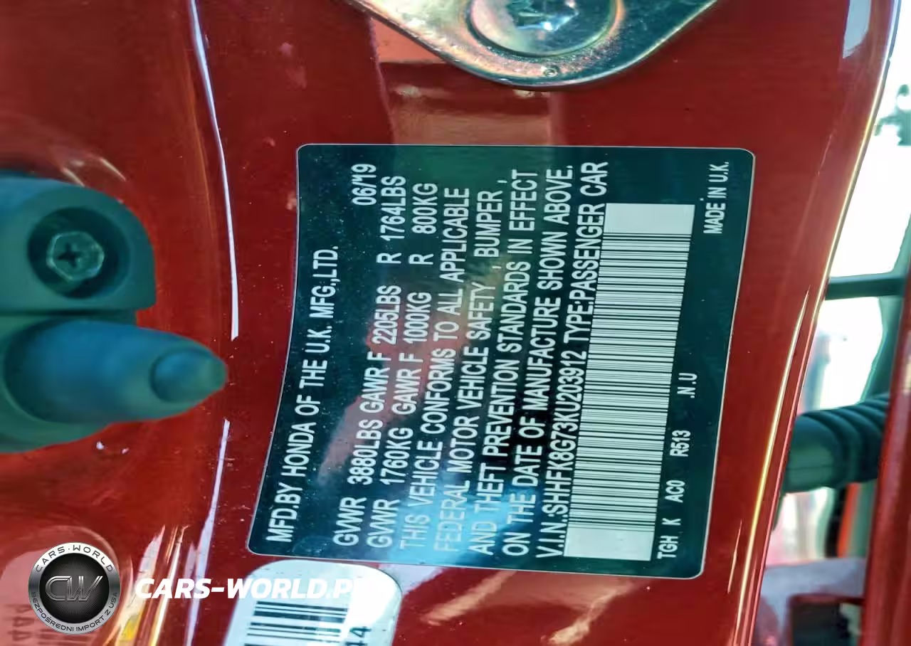 Copart Nr: C-94307975 VIN: SHHFK8G73KU203912 Port: Los Angeles, CA