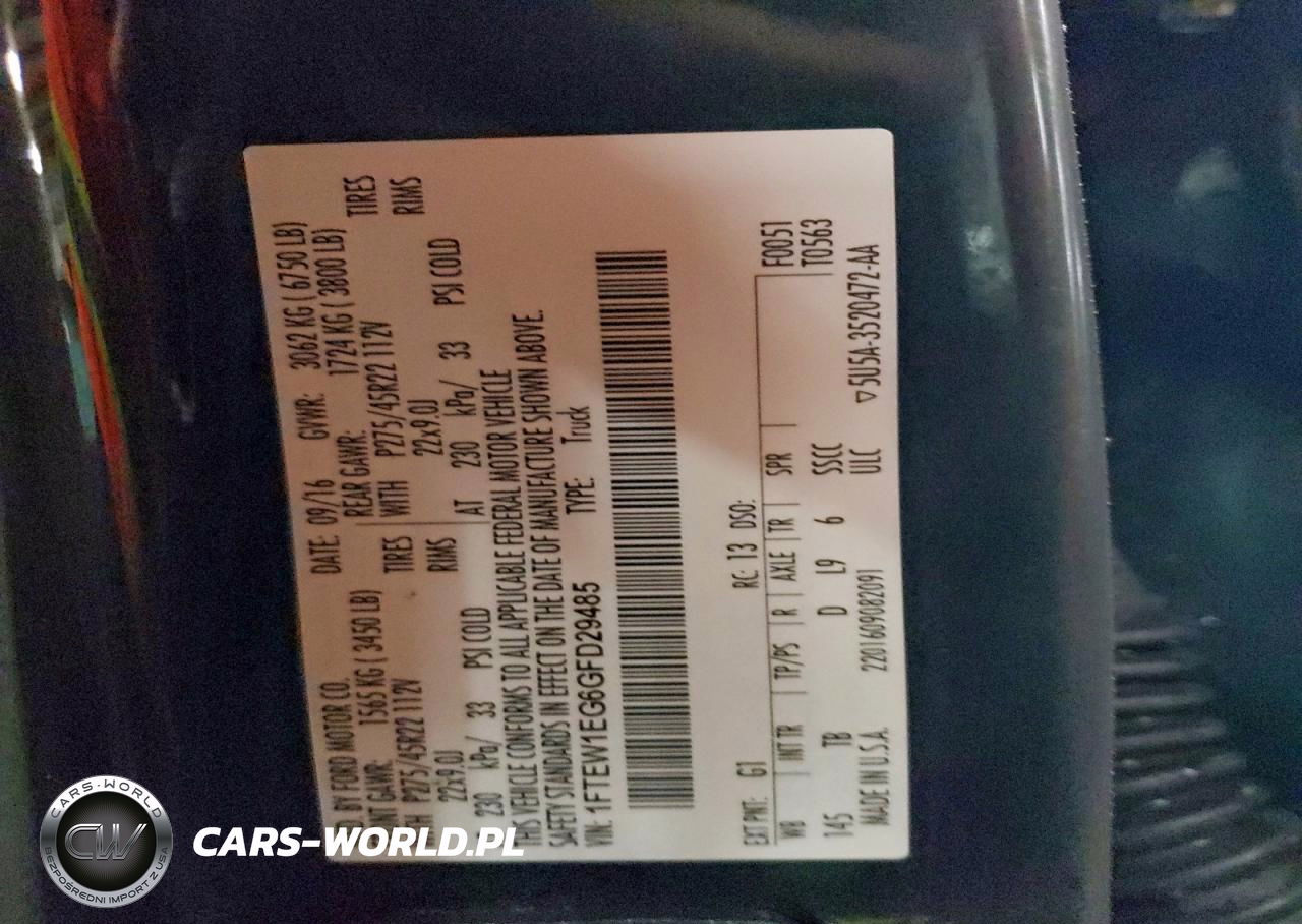 Copart Nr: C-94457045 VIN: 1FTEW1EG6GFD29485 Port: Elizabeth, NJ