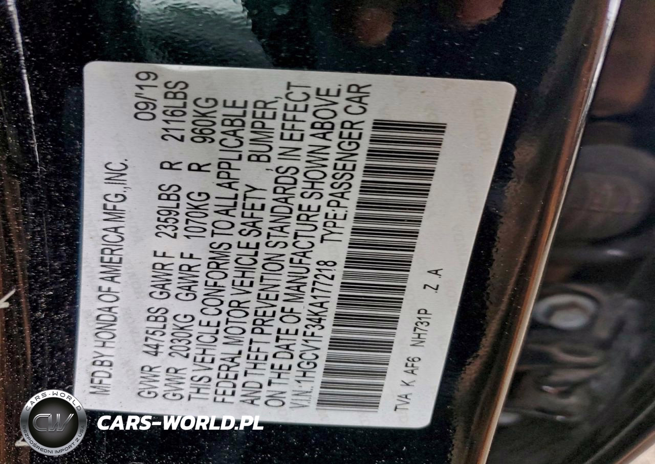 Copart Nr: C-94657165 VIN: 1HGCV1F34KA177218 Port: Elizabeth, NJ