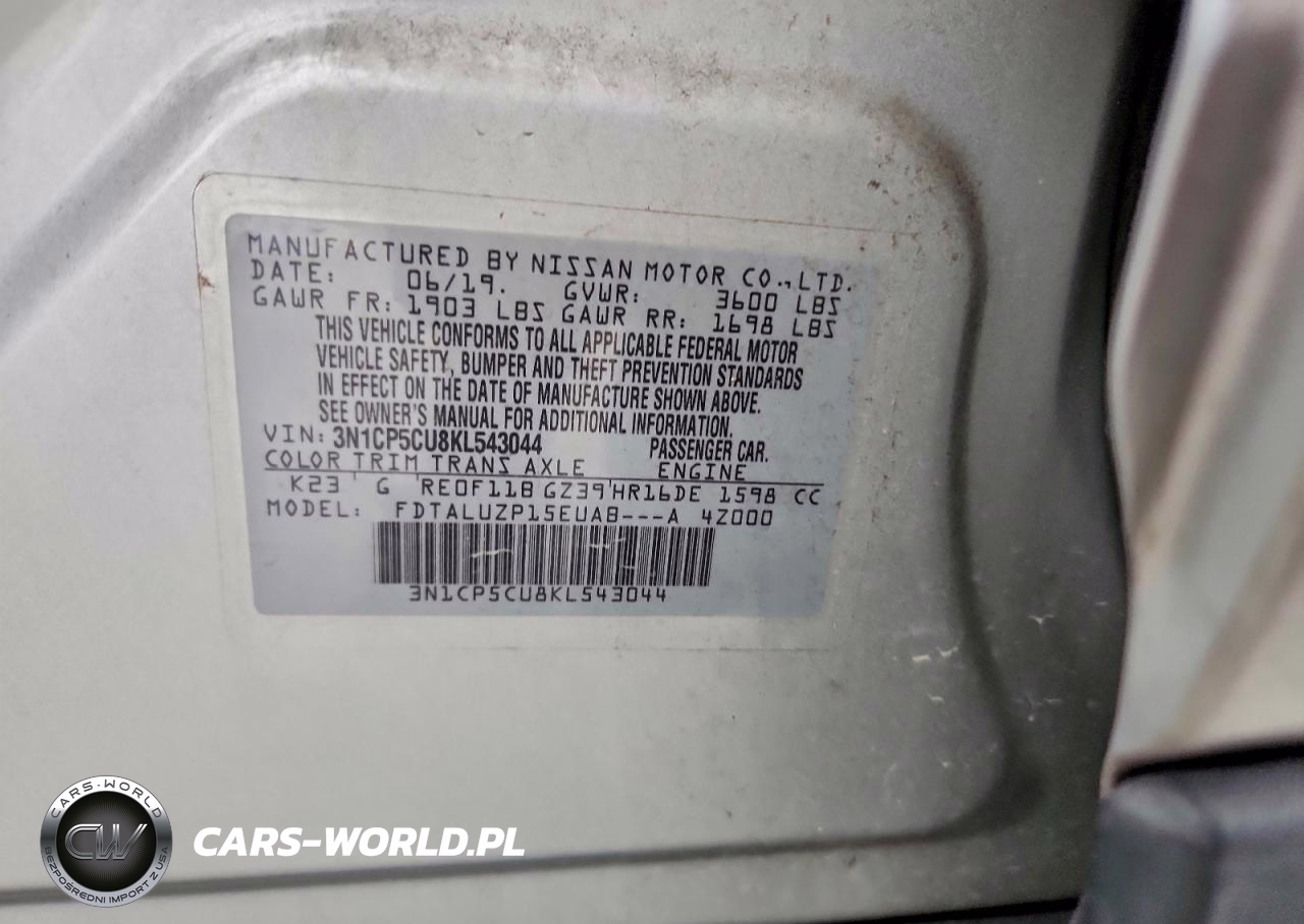 Copart Nr: C-94728955 VIN: 3N1CP5CU8KL543044 Port: Houston, TX