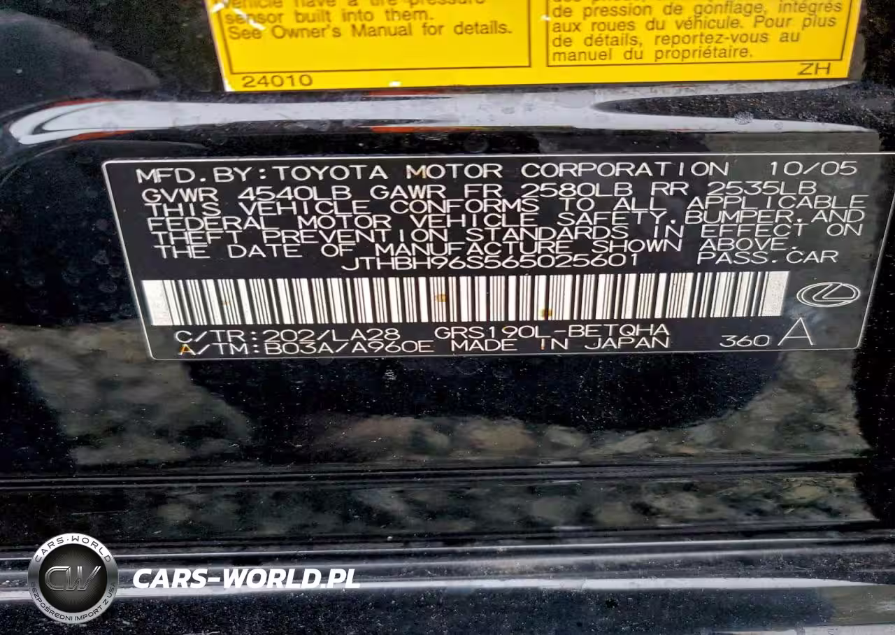 Copart Nr: C-94775725 VIN: JTHBH96S565025601 Port: Los Angeles, CA