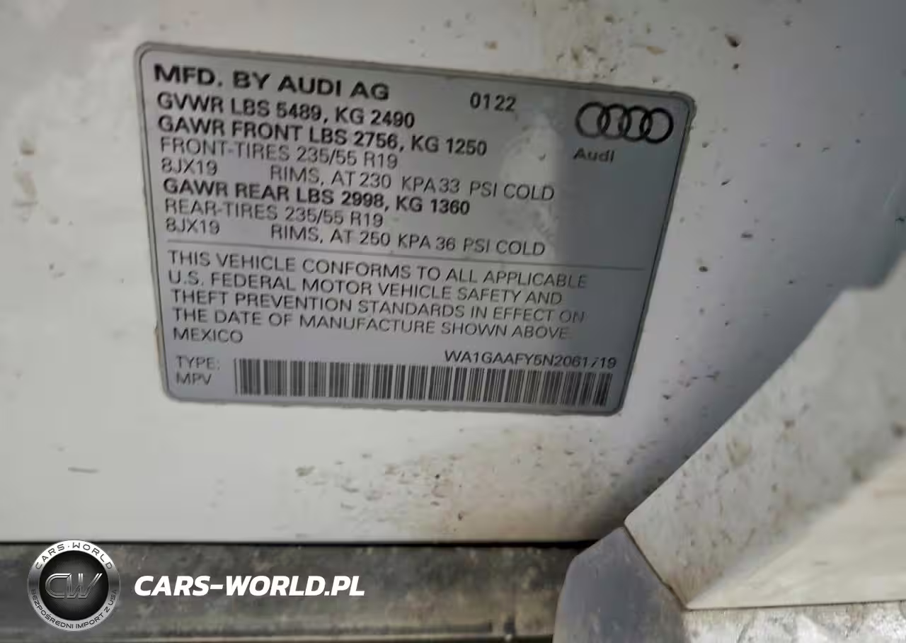Copart Nr: C-94900125 VIN: WA1GAAFY5N2061719 Port: Elizabeth, NJ