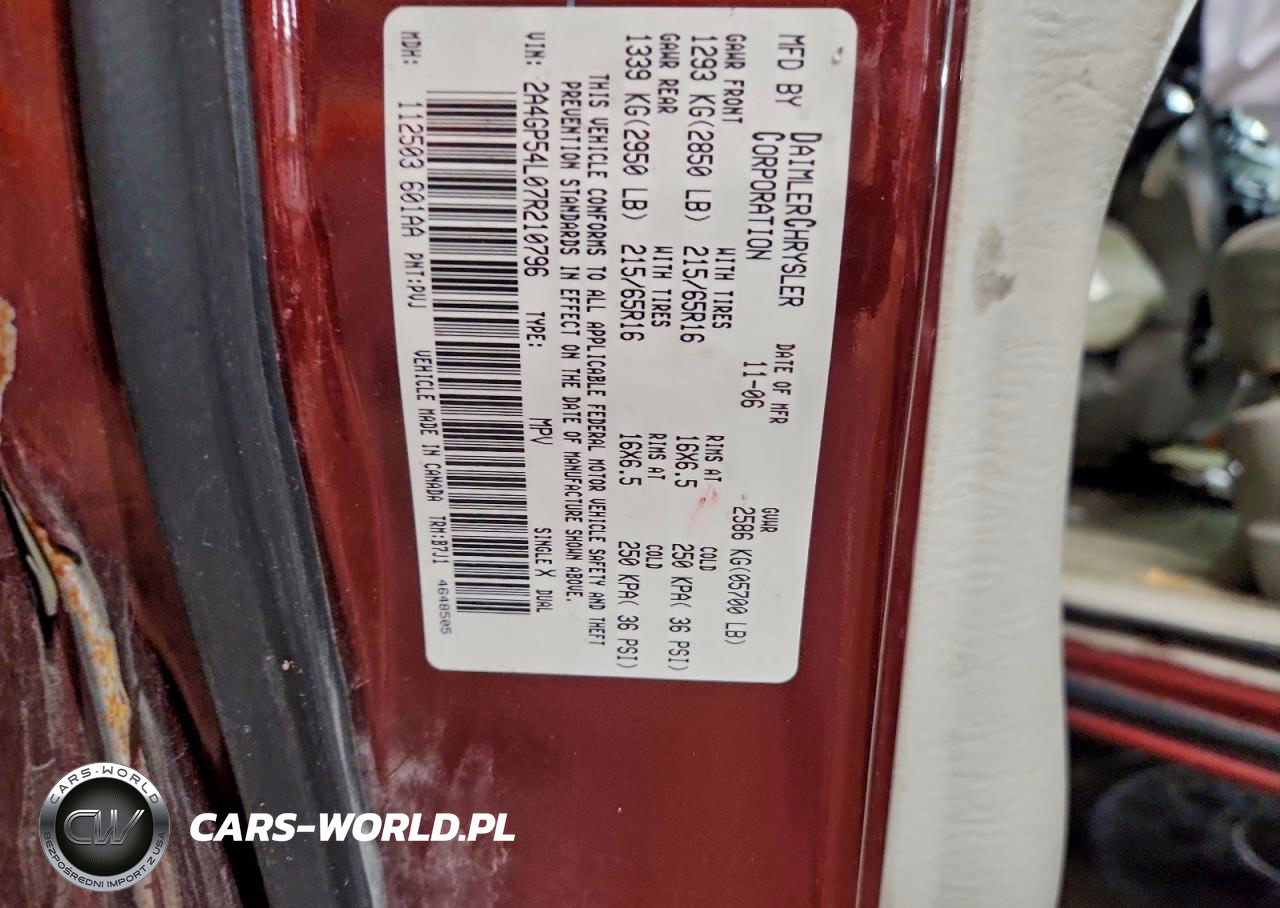 Copart Nr: C-94951425 VIN: 2A4GP54L07R210796 Port: Indianapolis, IN