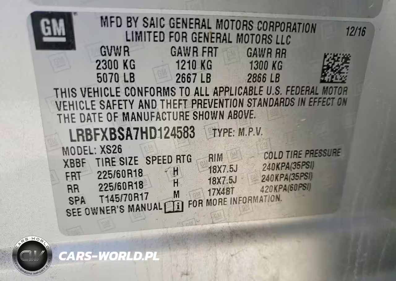 Copart Nr: C-95072835 VIN: LRBFXBSA7HD124583 Port: Houston, TX
