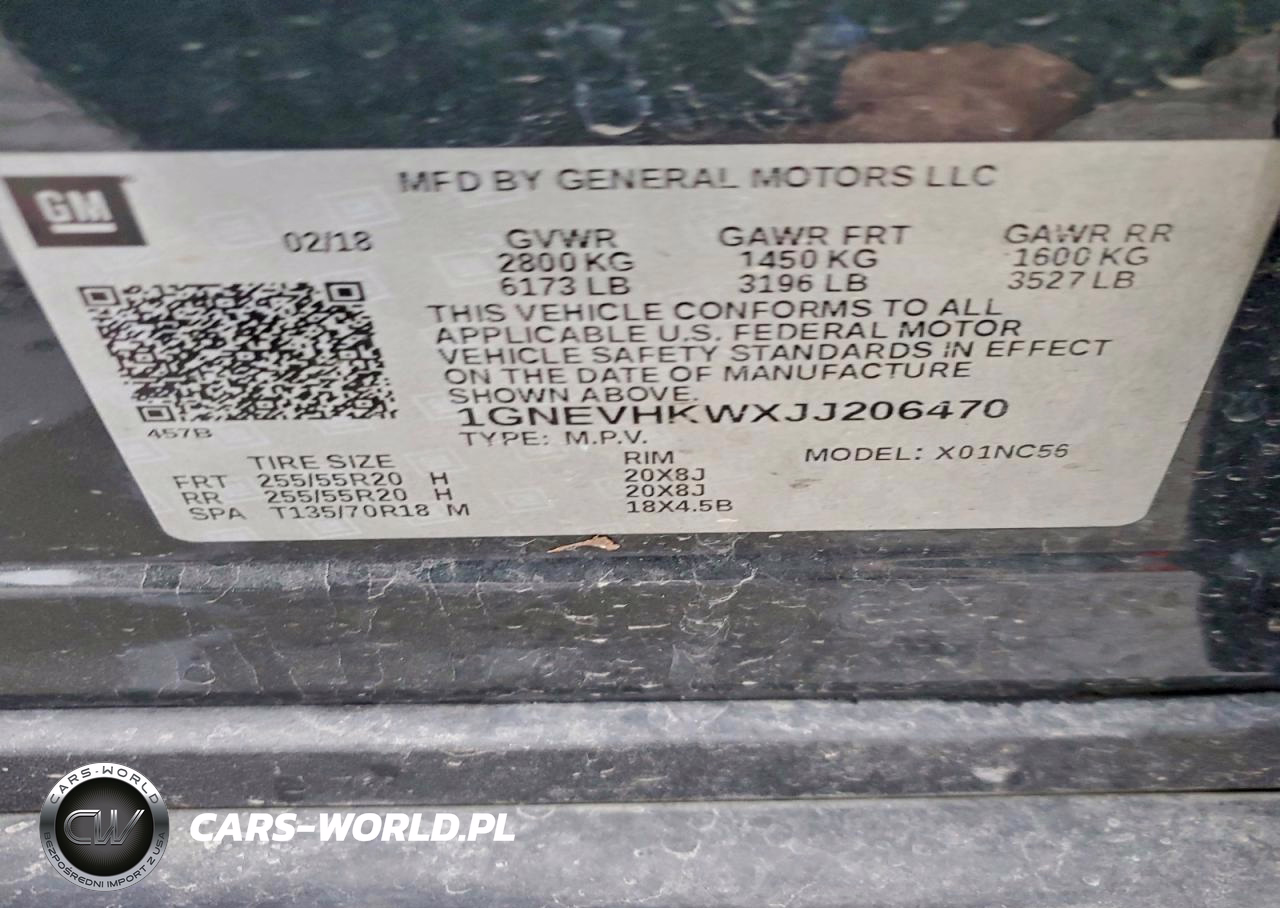 Copart Nr: C-95121725 VIN: 1GNEVHKWXJJ206470 Port: Indianapolis, IN