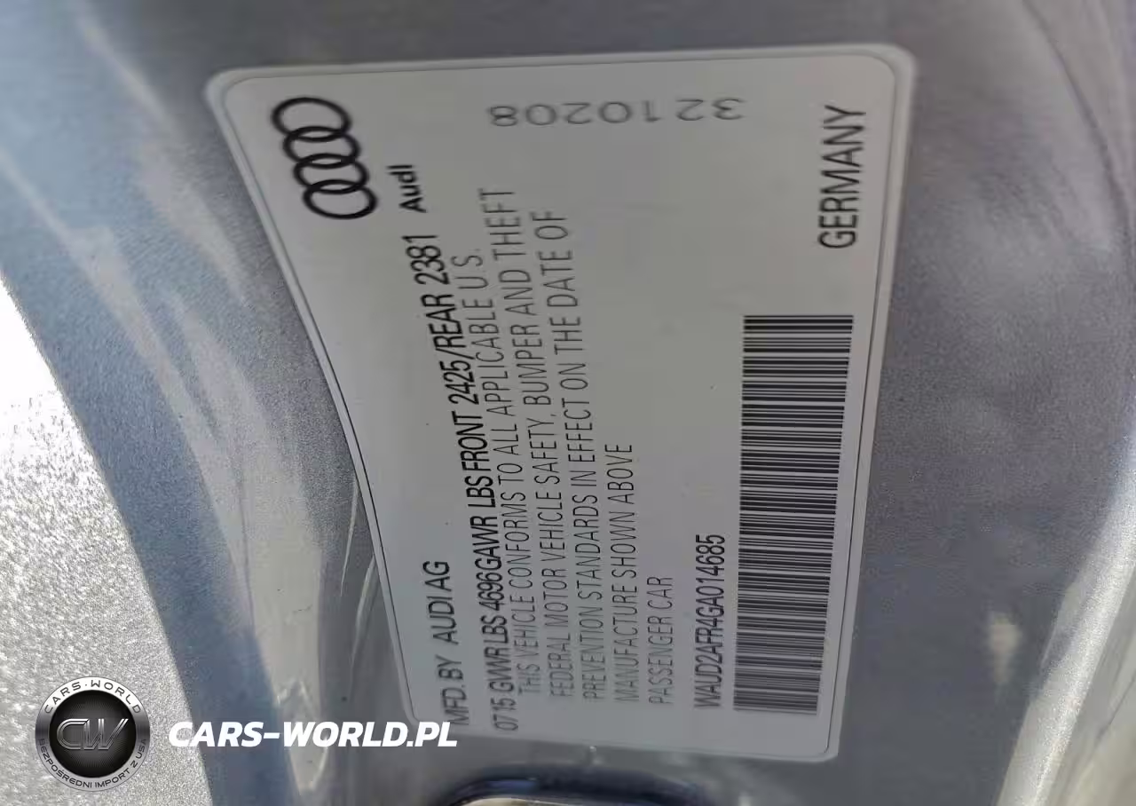 Copart Nr: C-95189005 VIN: WAUD2AFR4GA014685 Port: Los Angeles, CA