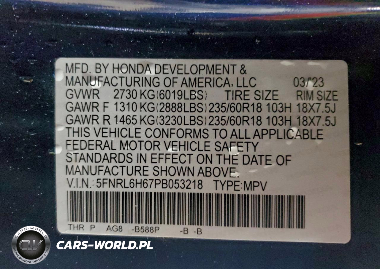 Copart Nr: C-95283745 VIN: 5FNRL6H67PB053218 Port: Elizabeth, NJ